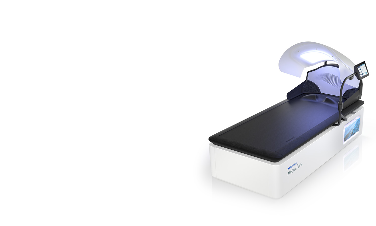 Stress, einseitige Belastungen, Fehlhaltungen am Arbeitsplatz und Bewegungsmangel führen bei immer mehr Menschen zu Verspannungen und Schmerzen in Nacken, Schulter und Rücken. Die Überwasser-Massage von Wellsystem nutzt Wärme und Wasserkraft für eine entspannende Ganz- oder Teilkörpermassage. Warme Wasserstrahlen treffen in gleichmässigen Bewegungen auf die Unterseite der weichen Liegefläche aus Naturkautschuk und massieren den Körper von Kopf bis Fuss, während man fast schwerelos auf der trockenen Wasseroberfläche schwebt. Die wohltuende Wärme und die sanfte Kraft des Wassers aktivieren die tieferen Gewebeschichten und lockern die gesamte Muskulatur. Dabei ist die kontaktlose Überwasser-Massage besonders hygienisch und eine ideale Ergänzung oder Alternative zur manuellen Therapie.